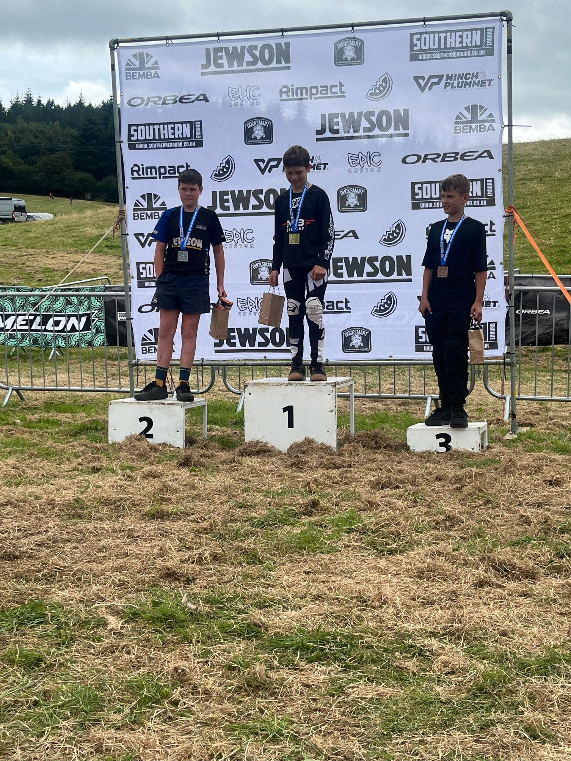 Jacob Coles, on the podium, came 2nd in the under 12s race at the Southern Enduro, Tiverton. Fantastic effort Jacob! Callum pictured riding above also had success and came 16th in the under 18s race. Callum had a great day attending his first mountain bike race. Brilliant effort Callum! After a morning of practice runs they hit the race stages in the afternoon. Both riders had a a great day racing. Thank you to all of our sponsors and a special shout out to Jewsons for assisting our racers with race entry fees via the Rider Development Fund!